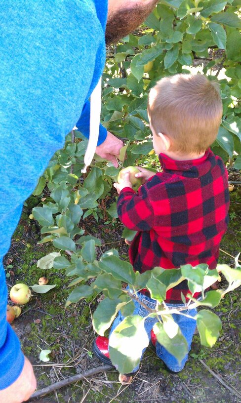 The farm was abuzz with lots of excitement. There were hayrides(which Jaxson refused to go on), mini tractors and tire swings for the kids, a pumpkin patch, chickens, a haunted house, live music, rows and rows and rows of apples and pears. Of course, there was lots of yummy home baked goods too. Now, I have never been a kettle corn fan (not a fan of the sweet and salty combo), but they had so many different flavors. I tried the chocolate and it tasted a lot like cereal but you know what, I liked it!